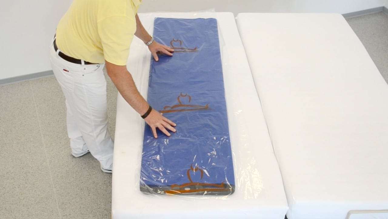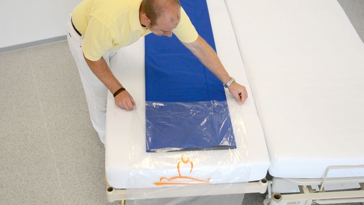 The protective cover can be used easily and reliably to protect the roll board from any possible contaminations. This ensures the best possible protection from infections, especially in sensitive areas and individual cases such as surgery and similar clinical areas.