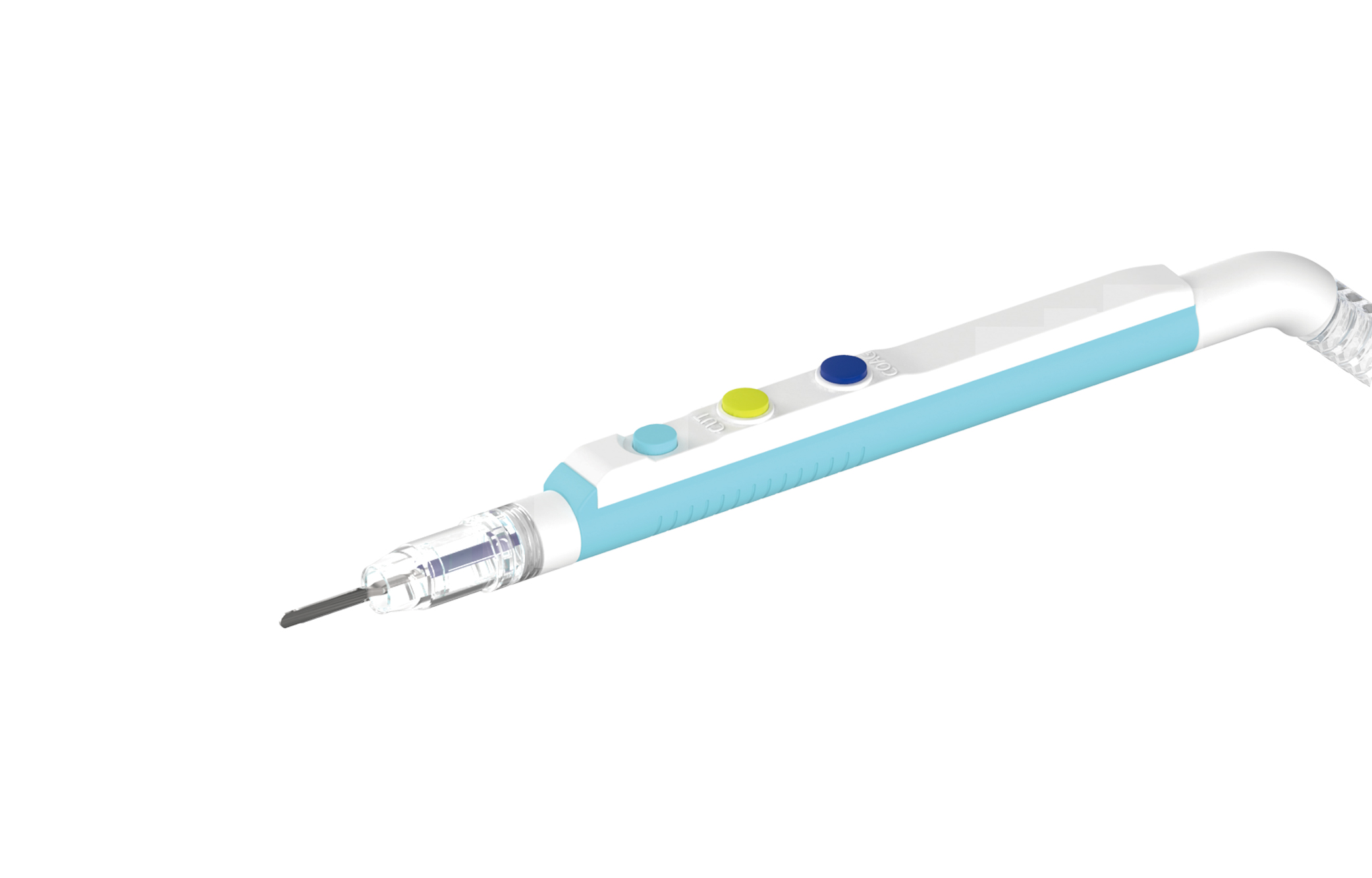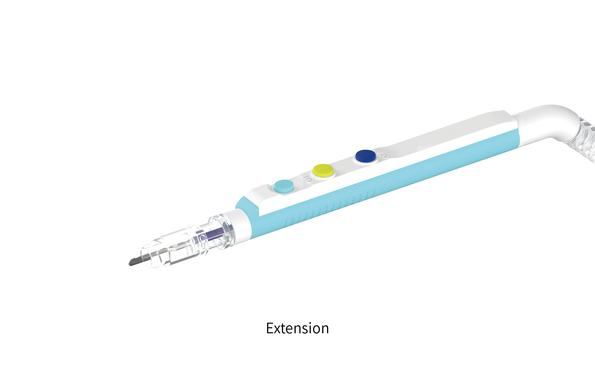 It is specially designed all in one type of Smoke pencil with easy control of suction nozzle. With the newest feature, the double extension picks up the smoke more efficiently. With a simple touch of the release button, our pencil can fully extend up to 6 inches to provide better reach for surgeons based on their personal preference. The dual extension can be extended at the tip by pulling on the tube at the tip of the pencil. The telescopic cannula can be positioned near the electrode t